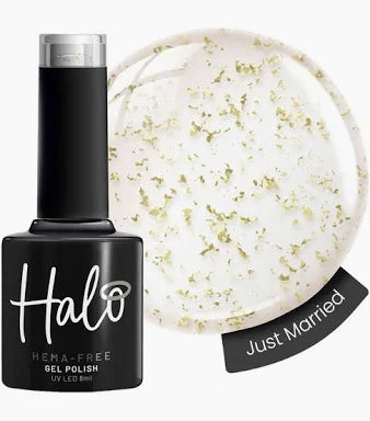 Just married is clear gel polish with delicate gold flecks, symbolising the golden glow of new beginnings and cherished vows.